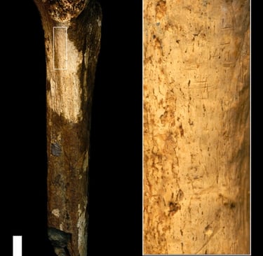 Quello che potete vedere nelle foto sono probabilmente segni di macellazione "umana"… su ossa umane, e ciò potrebbe indicare tracce di violenza, o di macellazione, da parte di individui "umani" nei confronti di conspecifici con lo scopo di nutrirsene. Ma, come potrete leggere verso la fine del post, potrebbe non trattarsi di cannibalismo vero e proprio.