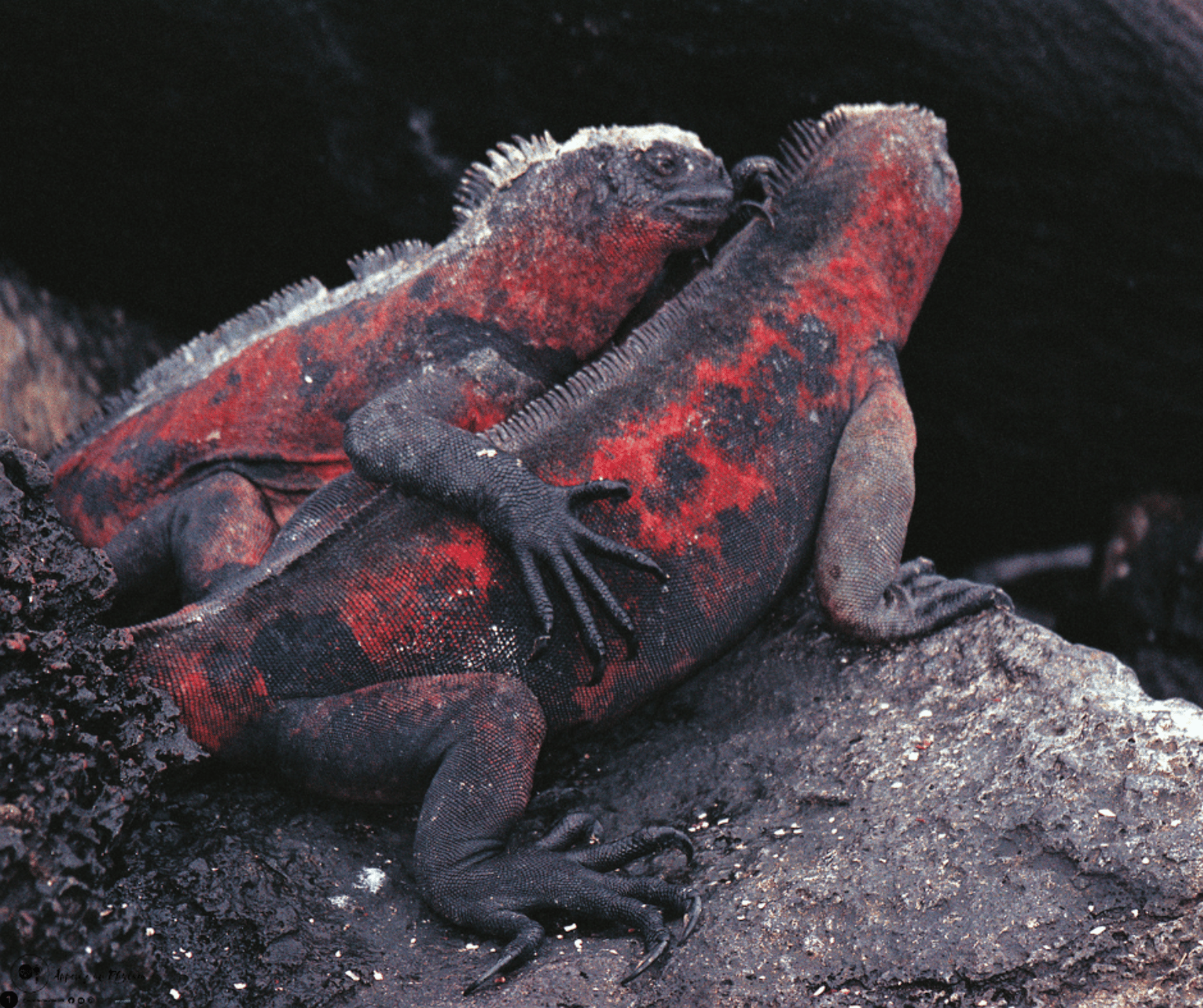 In generale, tutte le specie di iguana delle Galรกpagos possiedono uno strato dorsale piรน scuro rispetto alla superficie ventrale. Questโultima non รจ generalmente visibile da altre iguane o dai predatori terrestri e non รจ una regione esposta direttamente al sole;