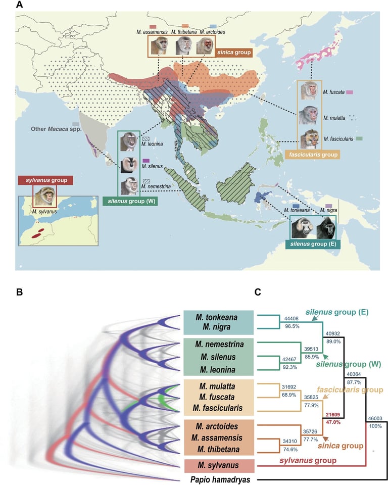 Fonte testo e immagine: Bao-Lin Zhang et al. Comparative genomics reveals the hybrid origin of a macaque group.Sci. Adv.9,eadd3580(2023).
