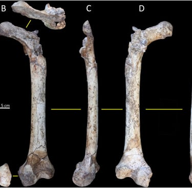 Fonte: Pickering, T. R., Cazenave, M., Clarke, R. J., Heile, A. J., Caruana, M. V., Kuman, K., Stratford, D., Brain, C. K., & Heaton, J. L. (2025). First articulating os coxae, femur, and tibia of a small adult Paranthropus robustus from Member 1 (Hanging Remnant) of the Swartkrans Formation, South Africa. Journal of Human Evolution, 201, 103647.